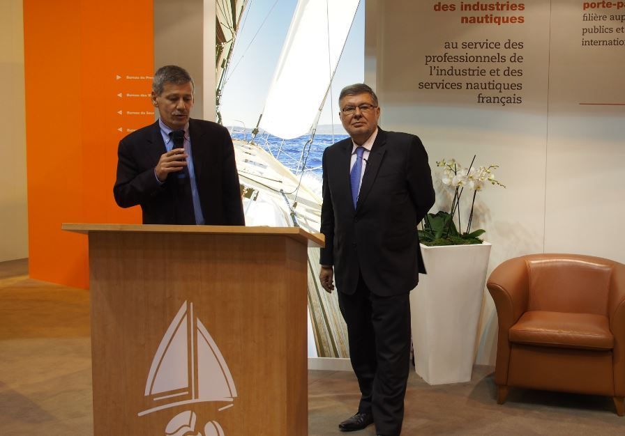 A l'issue d'une visite du salon effectuée en compagnie des différents officiels du Nautic, réalisée selon un timing militaire, Alain Vidalies a donc rejoint le stand de la Fédération des Industries Nautiques (FIN), sur lequel son président, Yves Lyon-Caen l'a accueilli en soulignant l'excellence industrielle d'une filière qui emploie 40 000 personnes, qui exporte 70% de sa production, tout en étant majortairement composée de petites et moyennes entreprises.