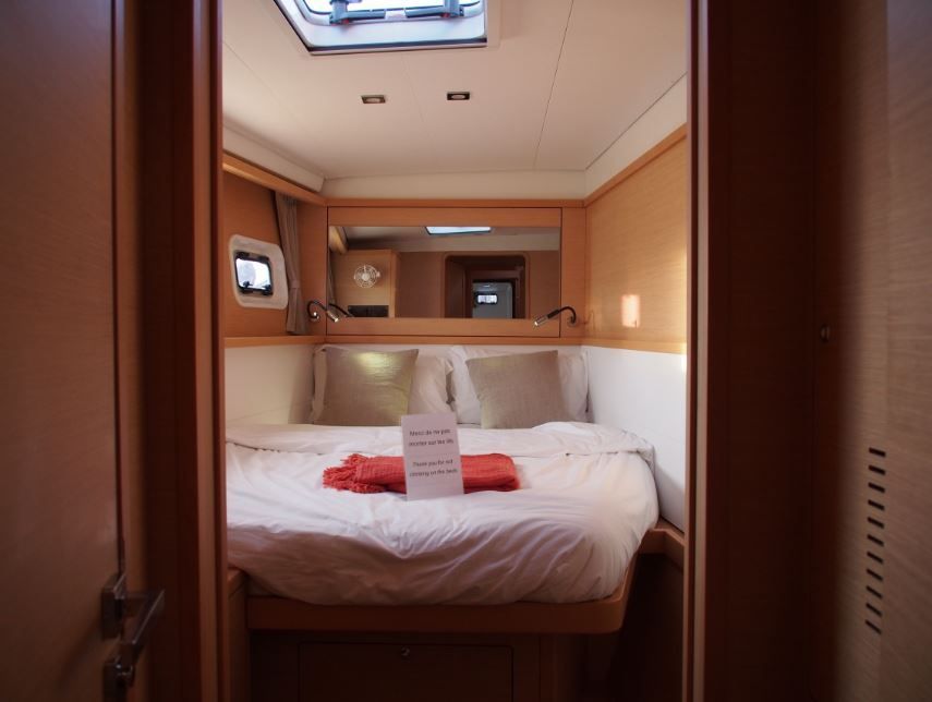 En particulier une cuisine en U, configuration bien pratique pour se tenir en navigation, une nouvelle table à carte et la présence d'un semi-island bed deux places, dans les cabines des pointes avant.