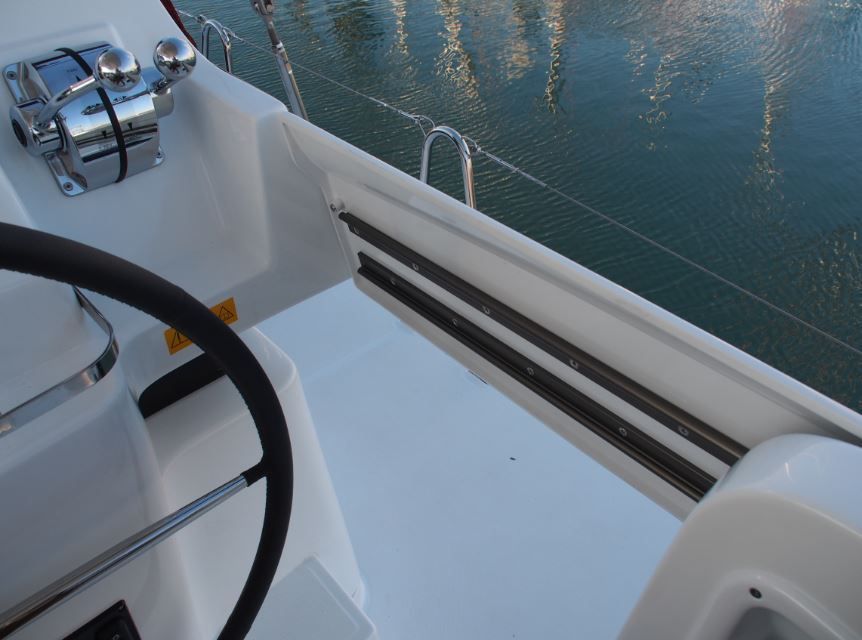 Pour ce faire, le Lagoon 450 SporTop abandonne le flybridge du Lagoon 450 classique, au profit d'un poste de barre positionné à l'arrière tribord du roof.