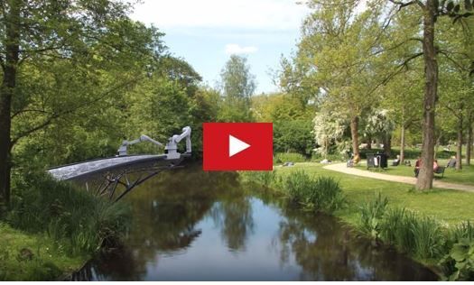 Et la société de mettre en avant le projet de construction d'un pont enjambant un canal, qui serait construit simultanément depuis chaque rive par deux imprimantes d'un genre un peu particulier, et dont les deux parties se rejoindraient finalement.