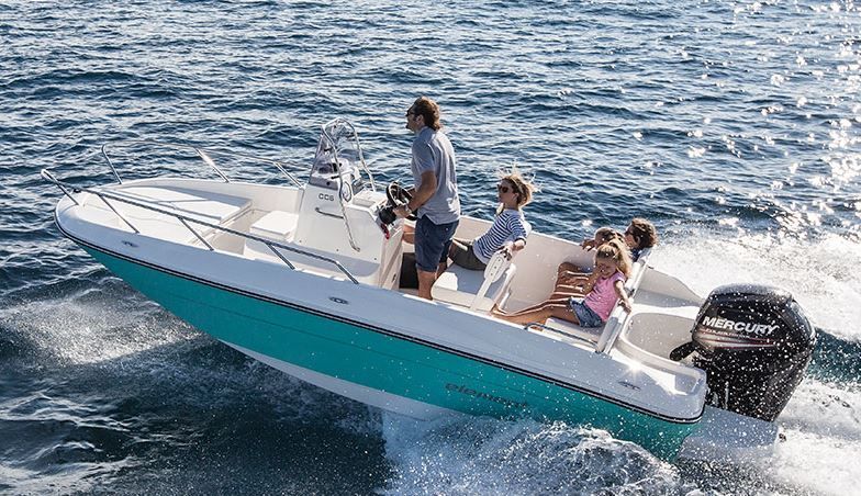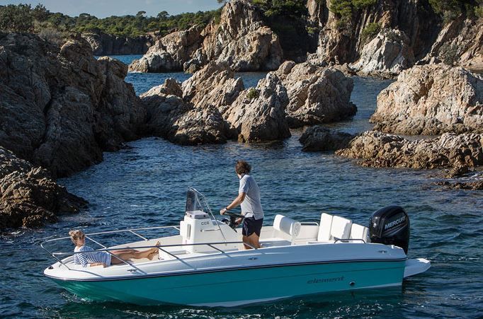 Le Bayliner Element CC6 est l'archétype de la petite vedette hors-bord familiale à console centrale, pétrie de qualités, qui se distingue par une carène en M, garante d'une excellente stabilité au mouillage.