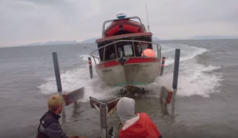 Cette façon, elle est mise en oeuvre par des pêcheurs d'Alaska qui parviennent à charger leur bateau de pêche aluminium en 2 secondes chrono, avant de le tirer sur la grève.