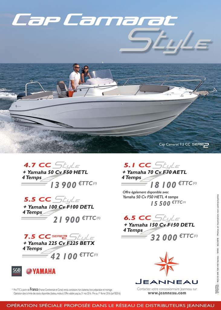 De réaliser des essais tout en profitant des promotions sur la série spéciale Cap Camarat Style, déclinée sur 5 modèles de la gamme, de 4.7 à 7.5m, en partenariat avec le motoriste Yamaha.