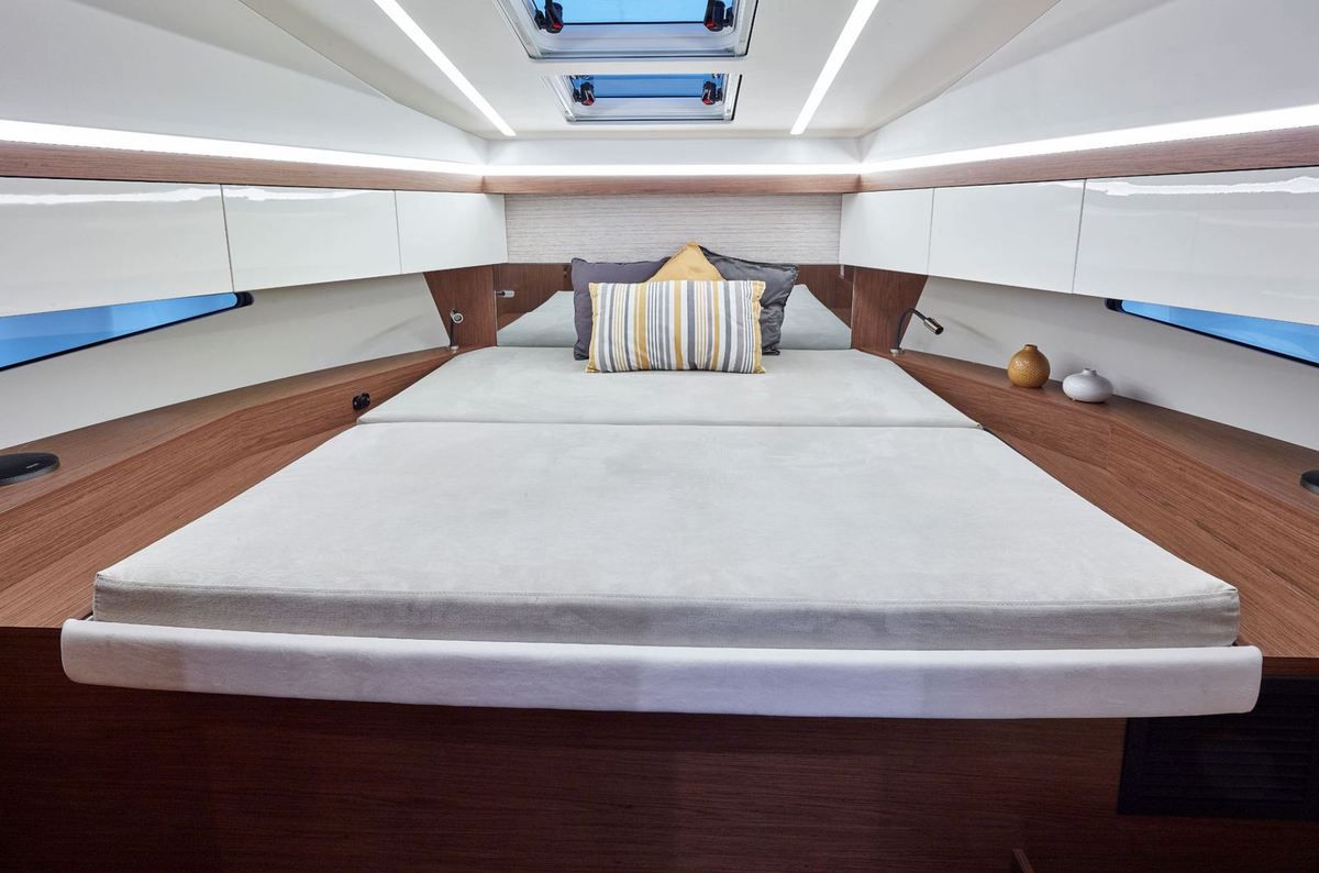 Le NC33 propose deux grandes cabines doubles et une belle salle de bain avec douche séparée, la cabine propriétaire se situant dans la pointe avant. Le NC33 pourra accueillir jusqu'à 6 personnes pour la nuit, avec son carré modulable.