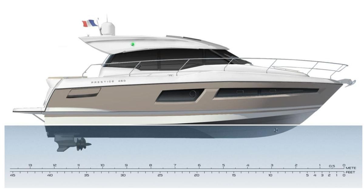 Chez Prestige, le concept S Line, qui consiste dans une déclinaison "coupé" des versions à flybridge, propose un design extérieur sportif, avec une ligne de roof tendue et un très vaste toit ouvrant, et un plan d'aménagement permettant de vivre de plain pied.