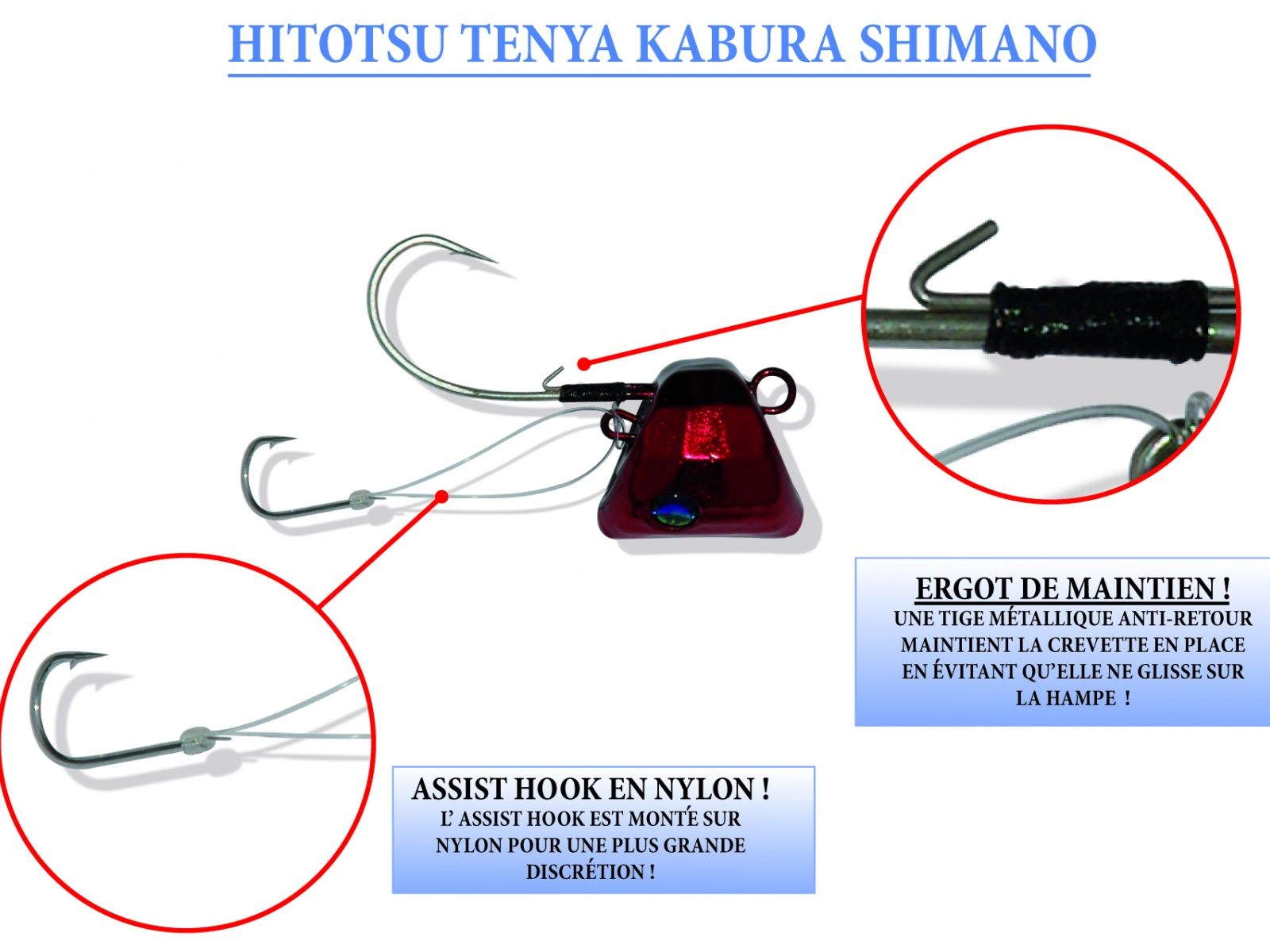 Destiné à recevoir une crevette, le Tenya emporte un plomb assez lourd le destinant aux pêches à la verticale.